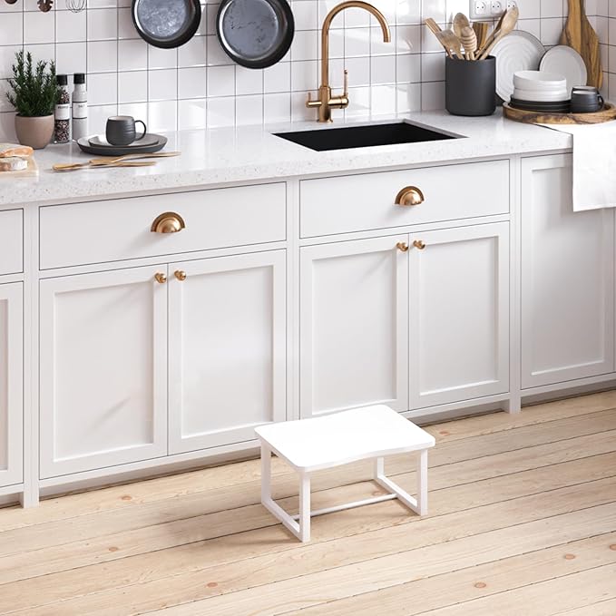 - 【Elegant Design】Featuring a wood white finish, this white step stool adds a touch of elegance to your home. It serves as a decorative piece while being a practical white solid bedside step stool that enhances your living space.