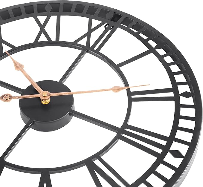18 Inch Wall Clock for Living Room Decor, Silent Non-Ticking Battery Operated Metal Wall Clock, Indoor Outdoor Clocks with Roman Numerals, Black
