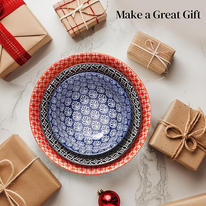 - Special Patterns: The beautiful patterns design and vibrant colors are all made with exquisite craftsmanship, which makes each mixing bowl unique. These mixing bowls can not only make your dining table any longer monotonous but also bring an appetite to you and your family.