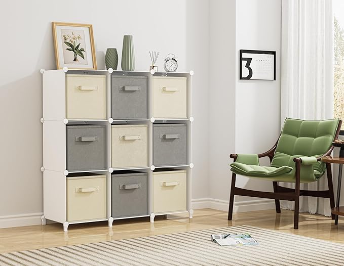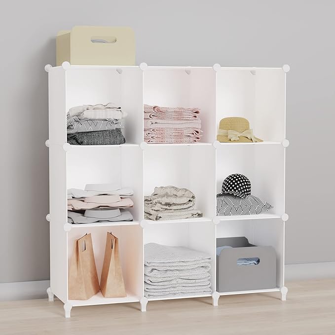 HOMIDEC Closet Organizers and Storage, 9 Cube Storage Organizer, Portable Closet Organizer Cubes Shelves for Clothes, Bedroom, Kids Room, Bathroom, Wardrobe, White