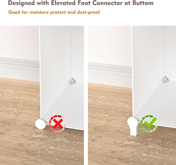 - 【Closet Organizer with Super Stability】: Whether every sheet of the cube closet organizer get well locked decides if you can get a strong structure. Our connector is made of ABS resin, inside is multilayer lock design so it won’t easily slides out. So we suggest you lock the sheet in deepest layer to get highest stability for the cube closet organizer.