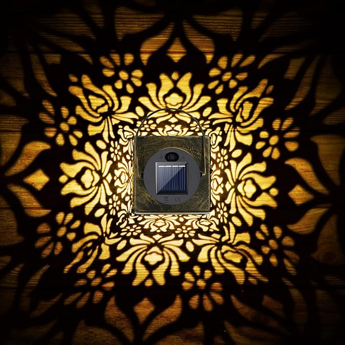 - Solar Lanterns Decoration - The outdoor lantern gives off just the right amount of soft warm yellow glow through the metal cutout surrounding it. This is not a bright metal lantern for reading purpose, it is more for evening decorative and mood enhancing. Solar outdoor lantern is a delightful addition to your outdoor lounging area.
