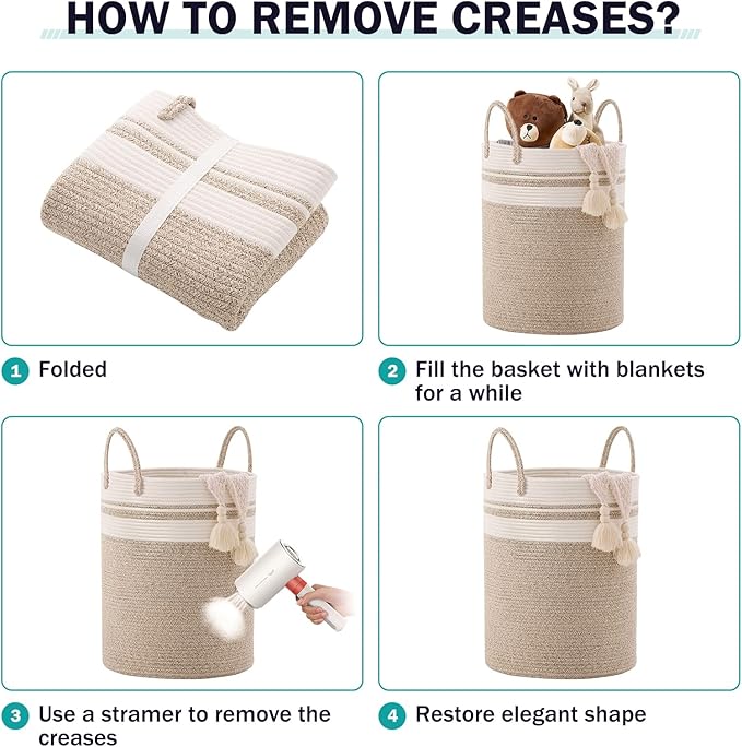 - 【Multipurpose Storage Baskets】58L capacity basket can keep things organized in a stylish and decorative way. You can use them to store extra towels, blanket, clothing, toys for baby and dogs, books, pillows or any other household items around the house, anything you can imagine
