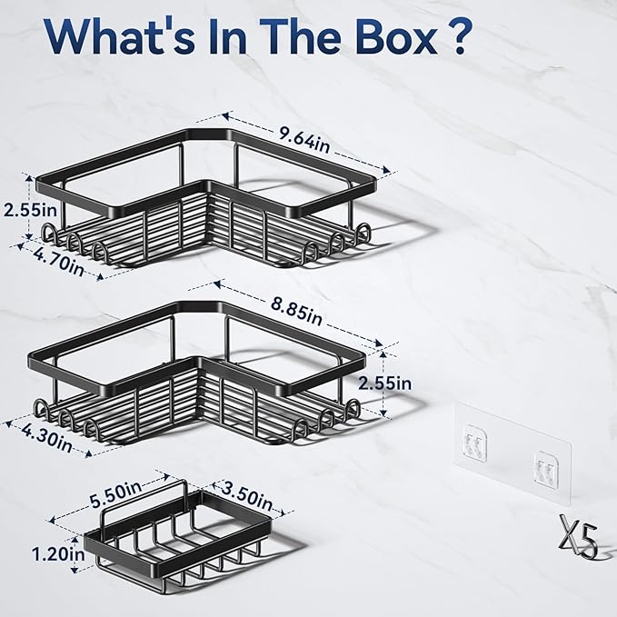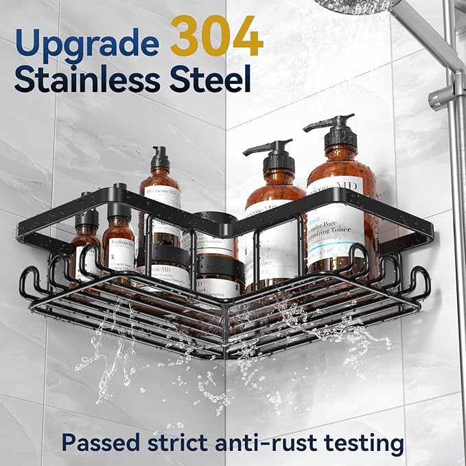 - Rust-Proof and Thicker Solid Frame: The corner shower caddy frame is made of 304 stainless steel, coated with rustproof paint, and thickened wire than those shower caddies on the market. This adhesive shower caddy remains rust-free and maintains a high sheen for years
