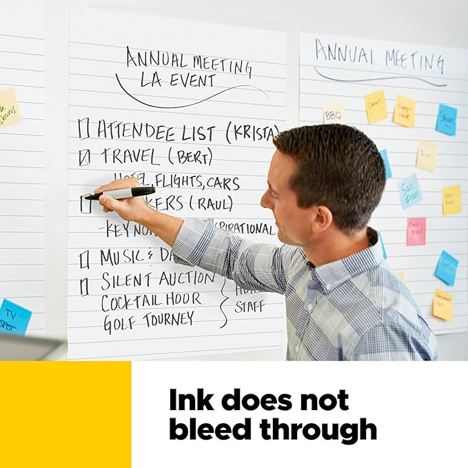 - INK BLEED-THROUGH RESISTANT PAPER - Large white lined premium self-stick flip chart paper that resists marker bleed-through to keep great ideas on the page, not on what's under the page