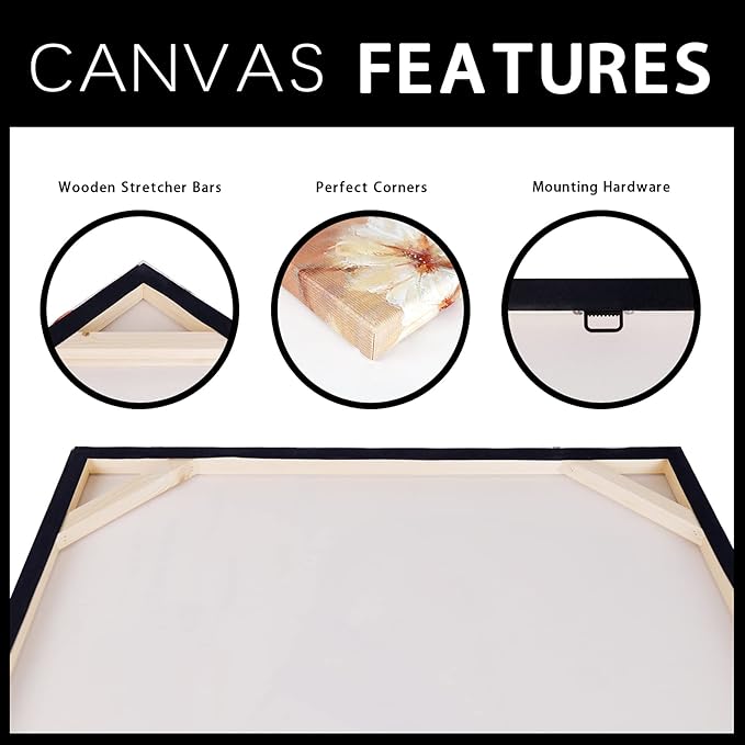 - The Canvas has been expertly stretched (gallery wrapped)over 1'' wood frames which come ready to hang with hooks
