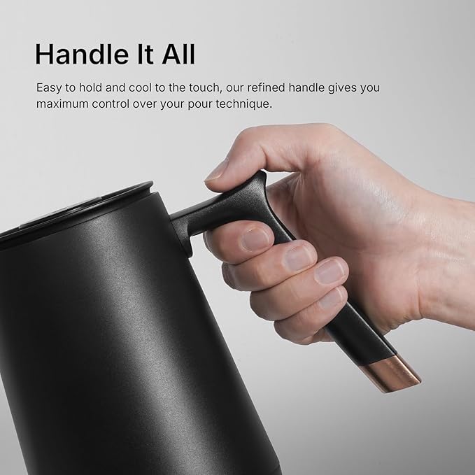 - Precise Water Stream | Patented fine gooseneck spout and stable water filtration structure, coffee novices also can easily create a thin and tough 90° vertical water flow while accurately controlling the flow rate, which meets the water injection requirements of different stages of pour over coffee brewing. Simple aesthetic meets powerful design.