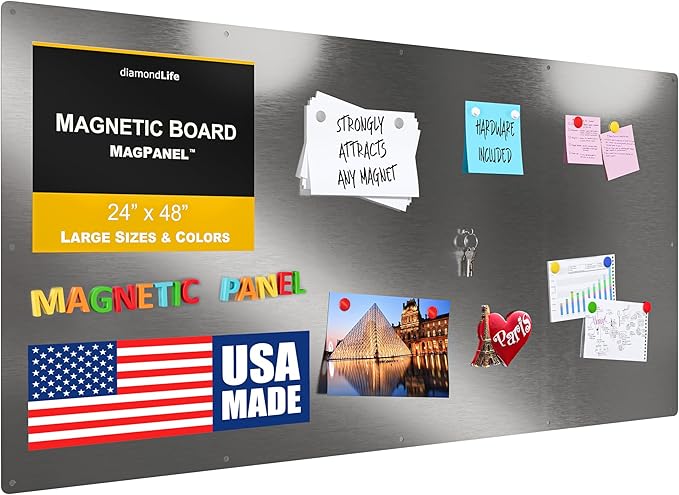 Diamond Life Magnetic Board - Memo & Vision Board for Home, School & Office - Magnet Board for Kids - Pre-drilled Mounting Screws Included (Stainless Steel 24"x48")