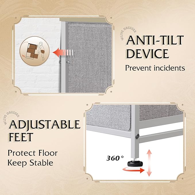 - Safe for Your Family: Feel free to place chest of drawers anywhere; the anti-tipping accessories included can prevent incidents; the non-woven fabric is breathable and harmless, suitable for teens and adults.