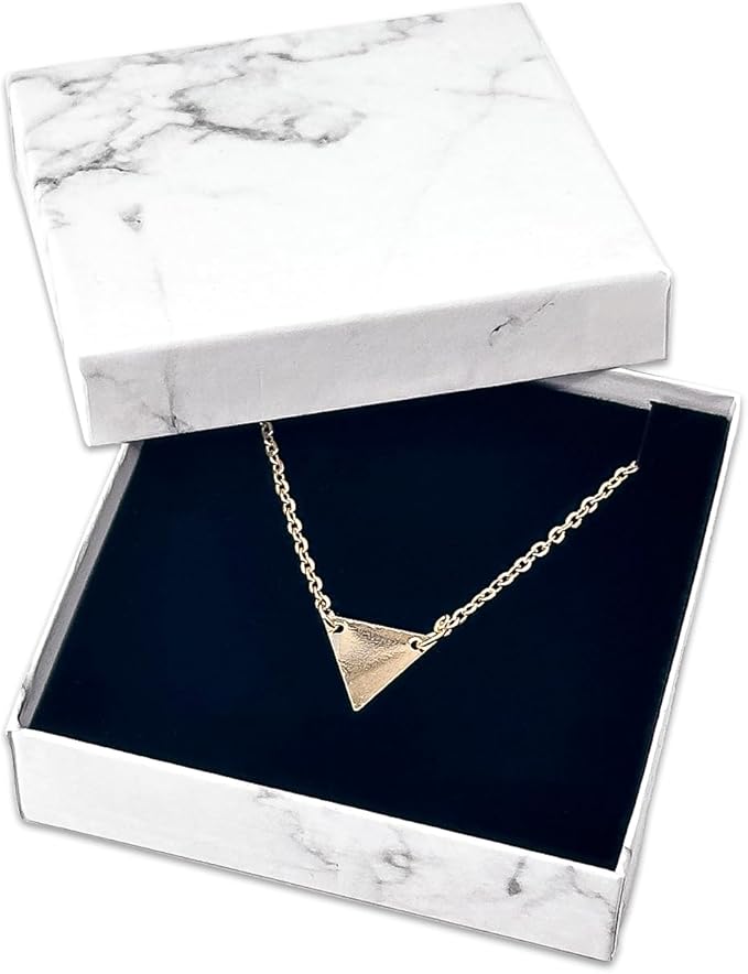 TheDisplayGuys - 24-Pack Cardboard Kraft Paper Jewelry Gift Boxes w. Velvet Padding - Necklace/Pendant - Marble White - #33 (3.5" x 3.5" x 1.0")