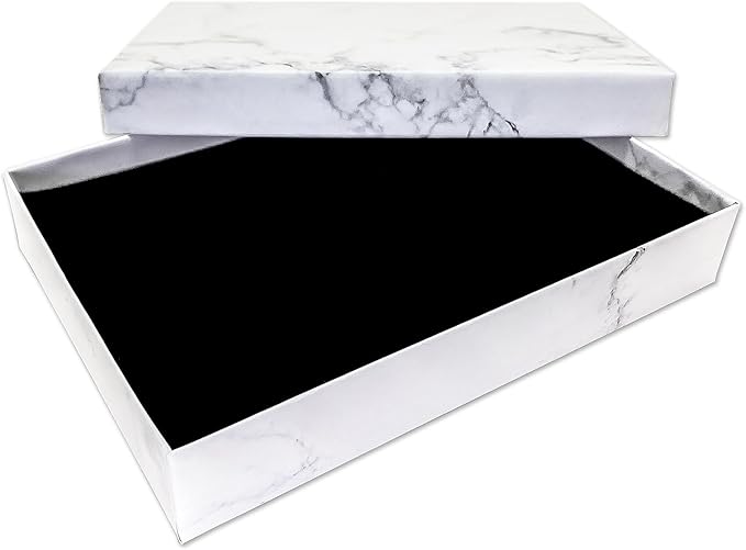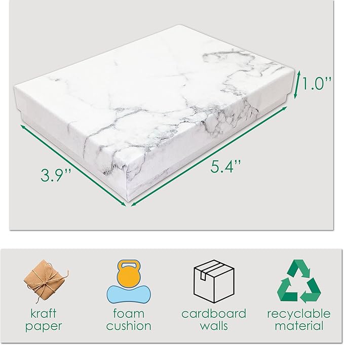 TheDisplayGuys - 12-Pack Cardboard Kraft Paper Jewelry Gift Boxes w. Velvet Padding - Necklace/Pendant - Marble White - #53 (5.4" x 3.9" x 1.0")