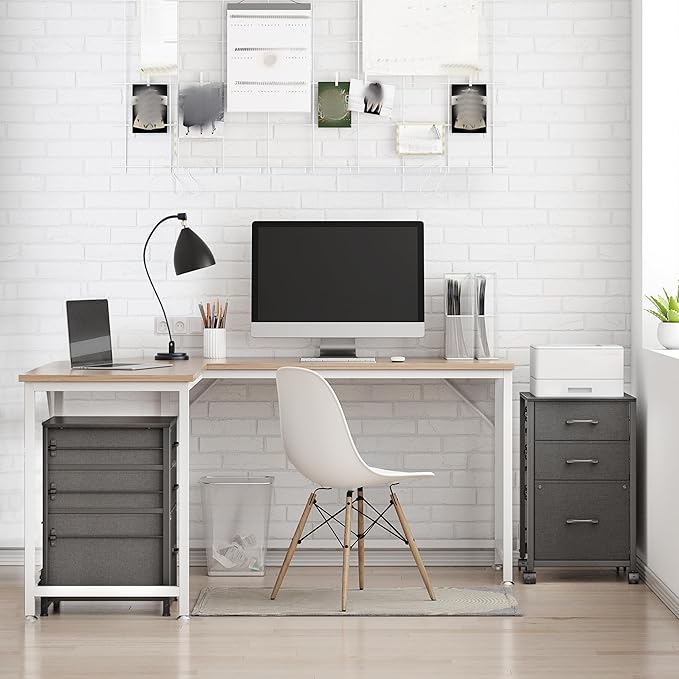 - [Easy to move: Rolling file cabinet & fixed feet] Different from other 3 drawer file cabinet, the file cabinets are designed with lightweight fabric drawers and equipped with four upgraded excellent craftsmanship wheels with brakes, which is more convenient to move. The wheels of the cabinet with drawers can be replaced with fixed feet, so you can fix this rolling file cabinet in any area you want
