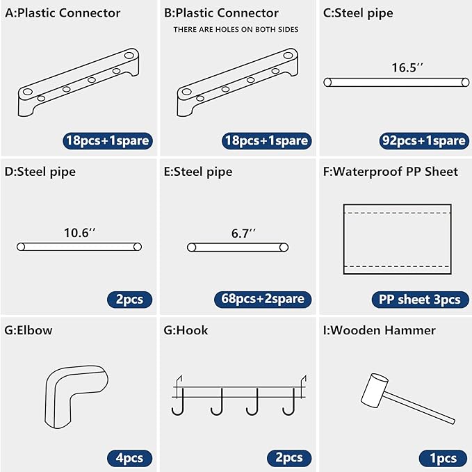 - ใ๐พ๐ฏ๐จ๐ป ๐๐ถ๐ผ ๐พ๐ฐ๐ณ๐ณ ๐ฎ๐ฌ๐ปใ: One shoe rack, wooden hammer, a user manual, our fan-favorite 12-month warranty and friendly customer service, everything will be better here.: )There are 92 16.5-inch long tubes (1 extra for spare), 2 10.6-inch medium tubes, and 68 6.7-inch short tubes (2 extra for spare). More infoemation, pls contact us on Amazon.