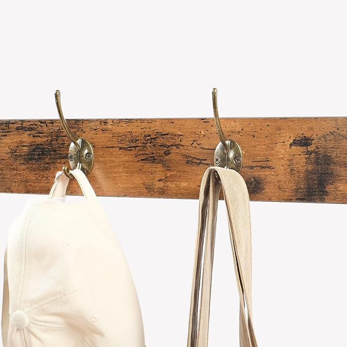 - Looking Great: Getting tired of the old-fashioned coat rack? The coat rack and bench in rustic brown and black color creates innovative industrial mix that will make your friends and family appreciate your choice
