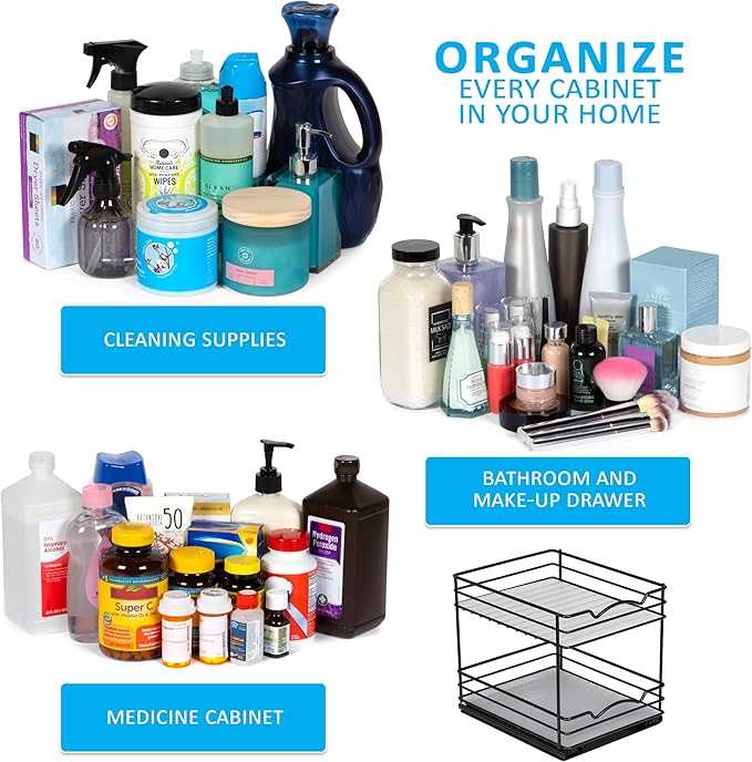 Pull Out Cabinet Organizer for Spices, Cans - Heavy Duty with Lifetime Limited Warranty- Pull Out Spice Rack- Cabinet Pull Out Shelf for Cans,Dishes, Etc, 8-1/2"Wx10-3/8"Dx8-7/8"H, Black