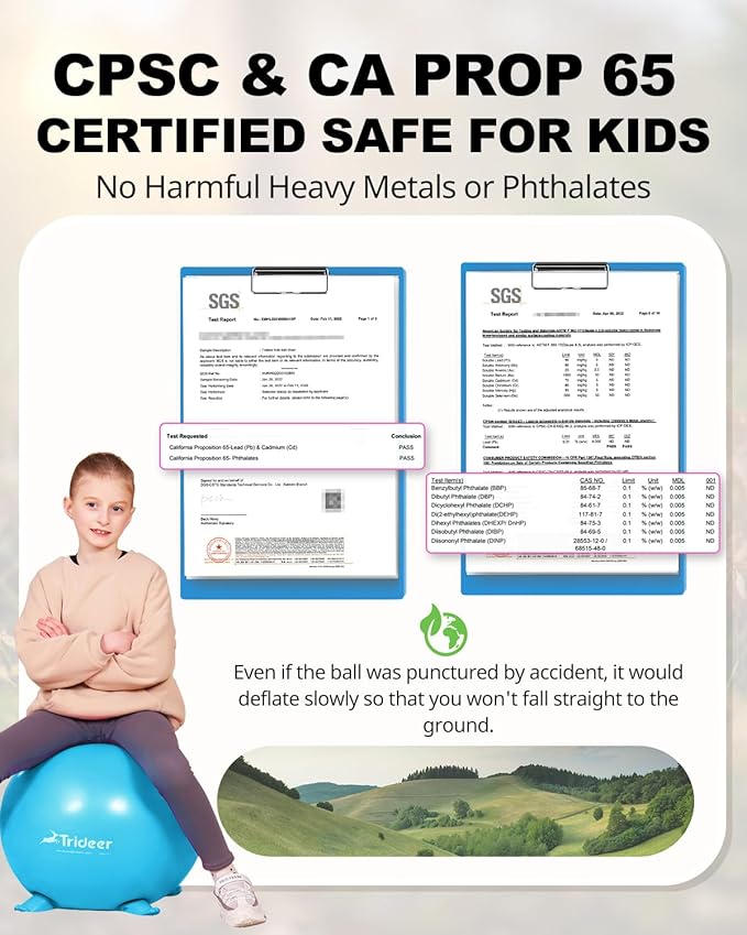 - 【Quality Parent-Child Time】When using our kids' yoga balls with other Trideer exercise balls for adults, you can exercise and play with your kids. It is a superb way to spend quality time with your kids exercising together on balancing balls.