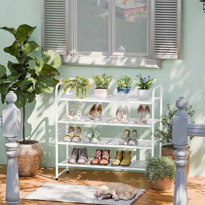 SUFAUY 4-Tier 33" Wide Shoe Rack, Closet Metal Shoe Rack Organizer Heavy Duty, Stackable, White
