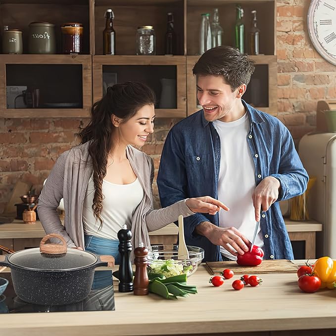 - Health-Conscious Innovation: Our triple-layer coating outperforms traditional nonstick pots and pans surfaces, requiring 60% less oil for guilt-free cooking. Independently certified PFOA/APEO/lead-free, nonstick integrity is 3x longer than basic pan