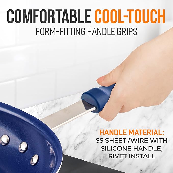 - STYLISH MODERN KITCHEN COOKWARE DESIGN: Cook with style as this pan is made with a stylish modern look in mind. Meant to be professional home kitchenware, this also features comfortable cool-touch form-fitting handle grips for your convenience
