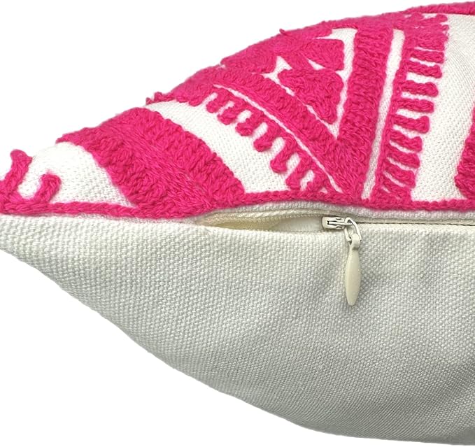 Alysheer Embroidered Decorative Throw Pillow Covers 18x18 inches Set of 2 Pieces, Boho Geometric Modern Chic Classic Pattern Cotton Cushion Cases for Sofa Couch Bed Living Room(Bright Hot Pink)