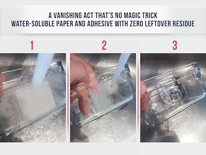 - No More Sticky Residue – Easily wash away your dissolvable labels under any temperature of water. Completely water soluble