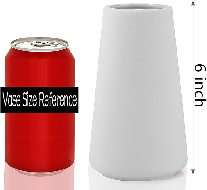 - Vase size: (6"H x 3.4"W base) with 2" opening. This decorative ceramic vase is about 6 inches tall, 2 inches in diameter at the top and 3.4 inches at the bottom. Perfect for supermarket bouquets or 11-20" artificial stems.