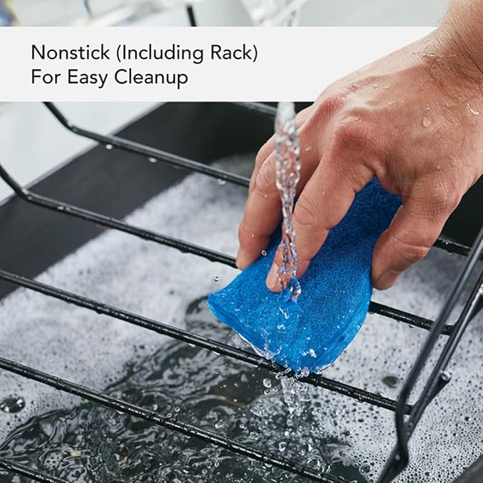 - REMOVABLE RACK: Nonstick rack rests comfortably in the roaster to elevate food and can be removed for simple cleanup to stay looking new