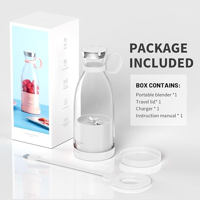 - Travel Lid: We equipped the mini blender with one more bottom cover , after juicing, the bottom motor can be removed and replaced with the travel lid. Then it is as easy to carry as a water bottle that can hold 350ml of juice and weighs only 460g. It is suitable for home, work, school or travel