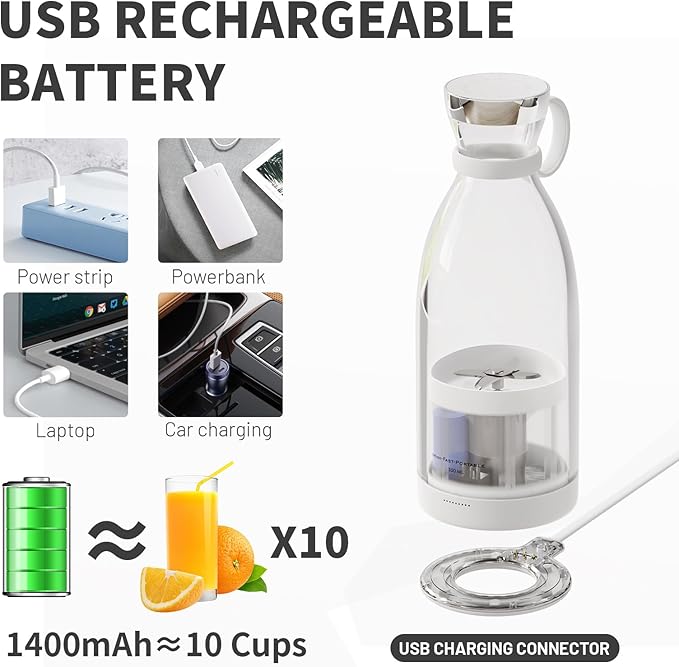- 4 Blades Design: The portable blender for milkshakes and smoothies has a powerful motor base and 4 food-grade stainless steel 3D blades.The SUS304 Stainless Stell of cutter head made with food-grade electrolysis technology is durable and has excellent mixing ability, allowing the pulp to be quickly broken without losing dietary fiber