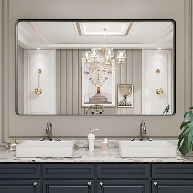 - 【Clear Reflection & NO Distortion】: LOAAO bathroom vanity mirror is designed with HD float glass to deliver a clear reflection with no distortion; clear lines; simple modern design