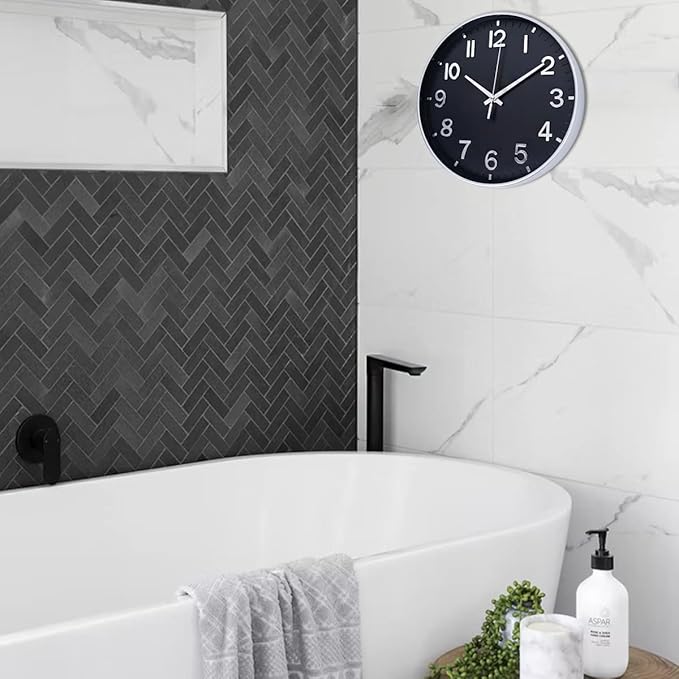 HZDHCLH Modern Wall Clocks Battery Operated,12 inch Silent Non Ticking Round Clock for Wall,Wall Clock for Kitchen Bedroom Living Room Office Classroom Decor (Black and Silver)