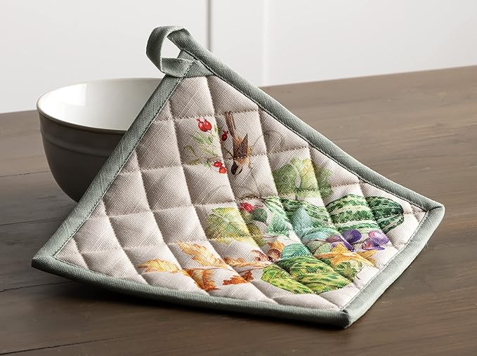 - Premium Quality: Crafted from quilted 100% cotton, this heat-resistant oven mitt and pot holder set protects your hands from hot cookware. Each piece features a built-in hanging loop for easy storage and quick access. This versatile set is perfect for everyday home kitchens, farmhouse kitchens, hotels, restaurants, and bakeries