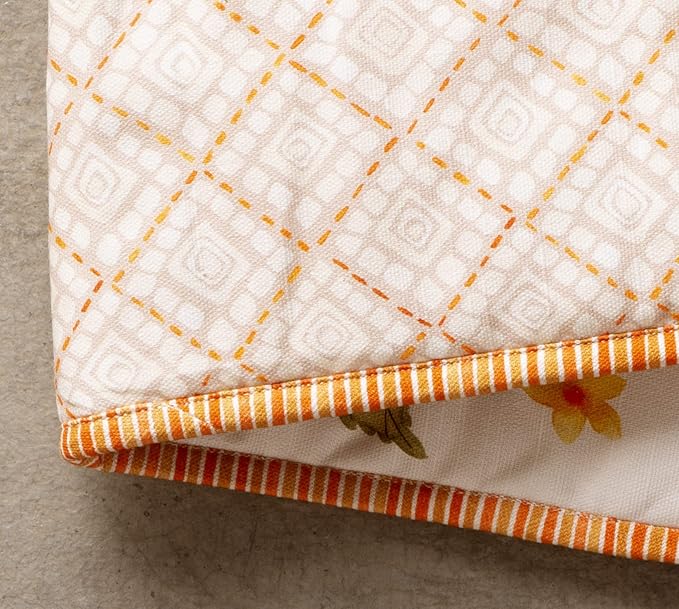 Maison d' Hermine Double Oven Mitt (7" x 35") 100% Cotton Heat Resistant BBQ Cooking Gloves with Loop for Thanksgiving Christmas Decorations Cooking Handling Hot Pan (Pumpkin Garden - Cloudy Cream)