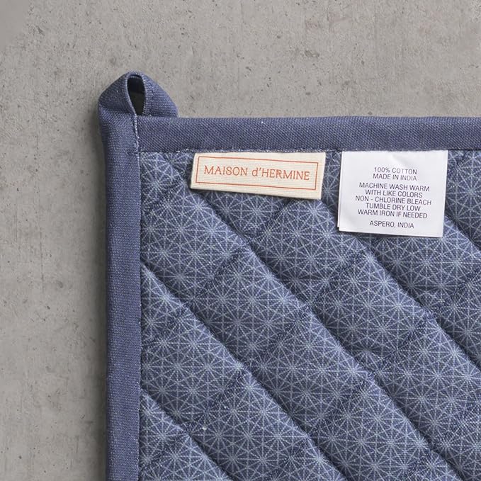 - Package Includes: Set includes 1 oven mitt (7.5" x 13") and 1 pot holder (8" x 8"), perfect for baking, roasting, and cooking. Made from 100% cotton for reliable heat protection. Designed in Europe and made in India
