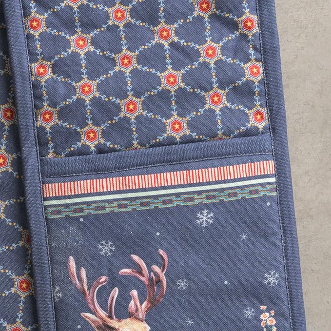 Maison d' Hermine Double Oven Mitt (7" x 35") 100% Cotton Heat Resistant BBQ Cooking Gloves with Loop for Thanksgiving Christmas Decorations Baking Cooking Barbeque Handling Hot Pan (Christmas Joy)