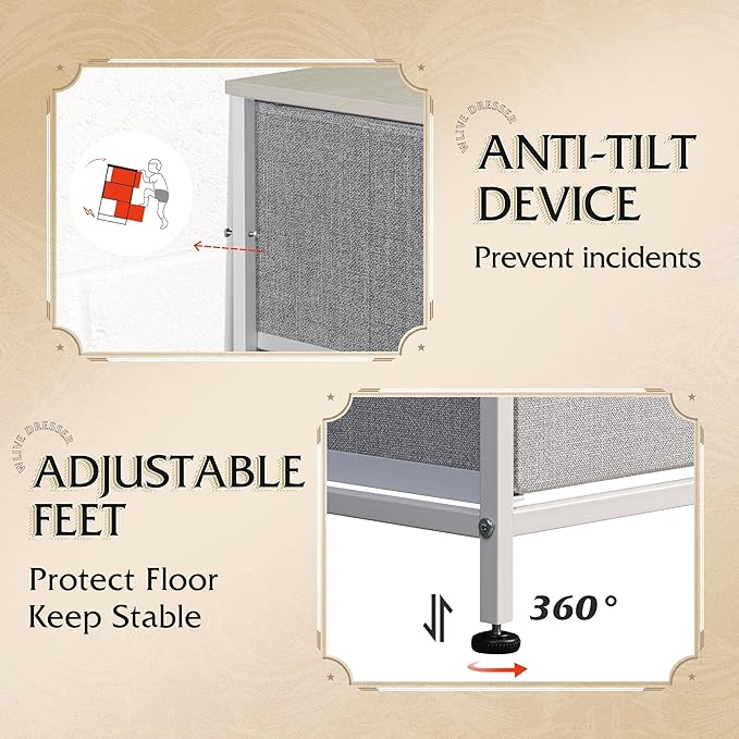 - 【✨ Stable Structure Safety Assured】Our storage drawers units is designed with 15mm thickened metal steel frame with cross support rods for durability. The storage organizer equipped with anti-tilt device, which can easily fix the cabinet to the wall, ensuring the safety of you, your family and pets, and enjoying a convenient life!
