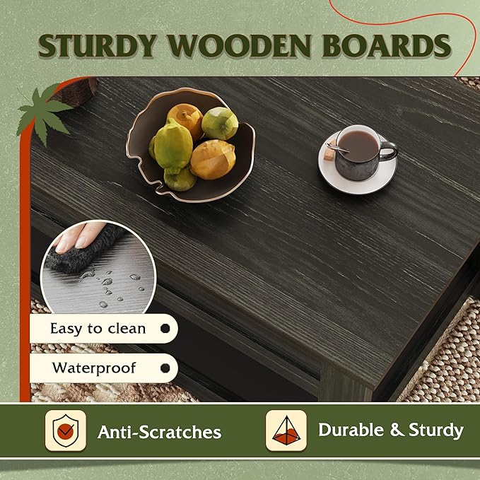 - 【Sturdy and Stable】The high quality MDF board with wide flat wooden legs ensures the stability and durability of this elevated coffee table.The desktop is waterproof and resistant to scratches.