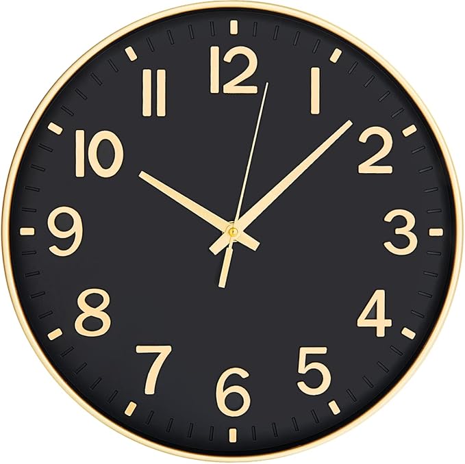 - πModern Design:Large and clear 3D arabic numerals make it easy to see from any corner of your room.This 12 inch round wall clock will complement any modern, contemporary or traditional home decor.Suitable for living Room,dining room,bedroom,kitchen etc.