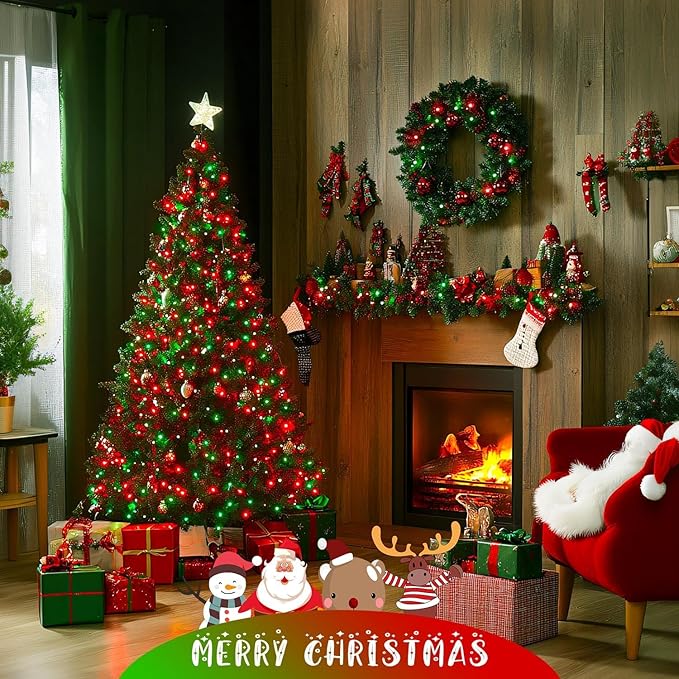 JMEXSUSS 200 LED String Lights Outdoor for Christmas Decor, Red & Green Christmas Lights Clear Wire, 11 Modes Connectable Twinkle String Light Plug in for Garden Home Xmas Decorations