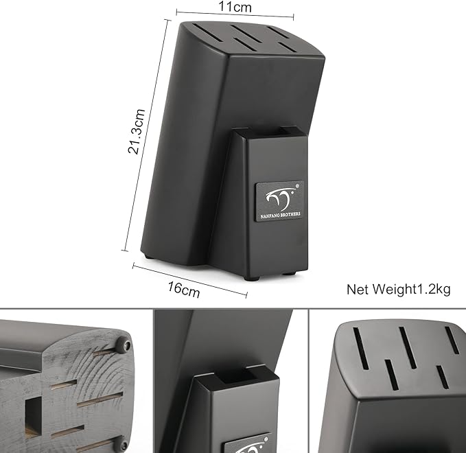 - CONVENIENT CARE & STORAGE - Add a touch of natural beauty to your kitchen with our wooden knife block. Crafted from premium wood, this compact and stylish block securely holds and organizes your knives while protecting their sharp edges. Its durable and easy to clean design ensures long-lasting performance. Also offering a convenient and visually appealing storage solution for these prized knives
