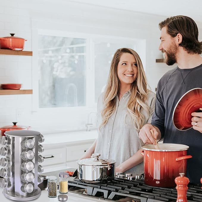 KALINCO Rotating Spice Rack Organizer, Revolving Spice Rack for Cabinet, Stainless Steel Spice Organizer with Jars(20-Jar)