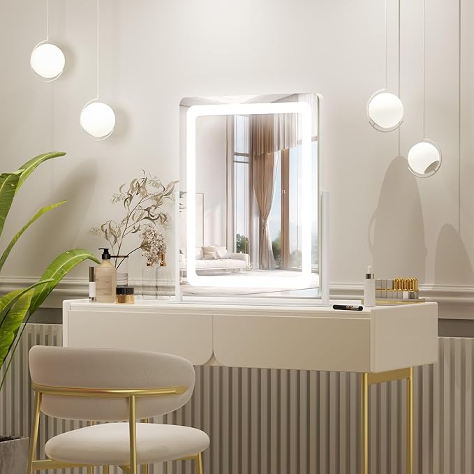 - ✅Adjustable Color Temperature & Dimmable LED Light - Choose your favorite lighting with the touch switch and three choices of color temperature in warm white(2700K),neutral white(3500K) to cool daylight(5500K), it also supports 20% - 100% brightness range for adjustment and lasts 50000 hours continued use. Ideal helper to give the right light for daily makeup,party makeup and other occasions.