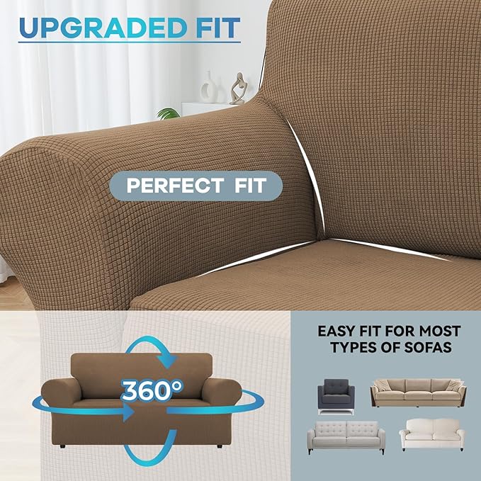 LURKA Stretch Loveseat Sofa Slipcovers 1 Piece Couch Covers for Sofa Furniture Protector Full Sofa Covers with Elastic Bottom for Kids and Dog (Camel, Medium)