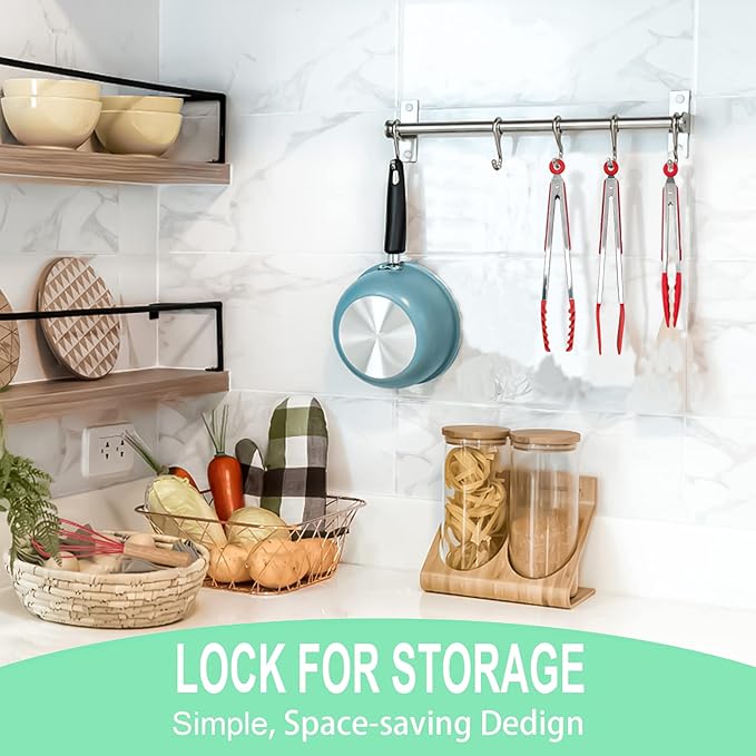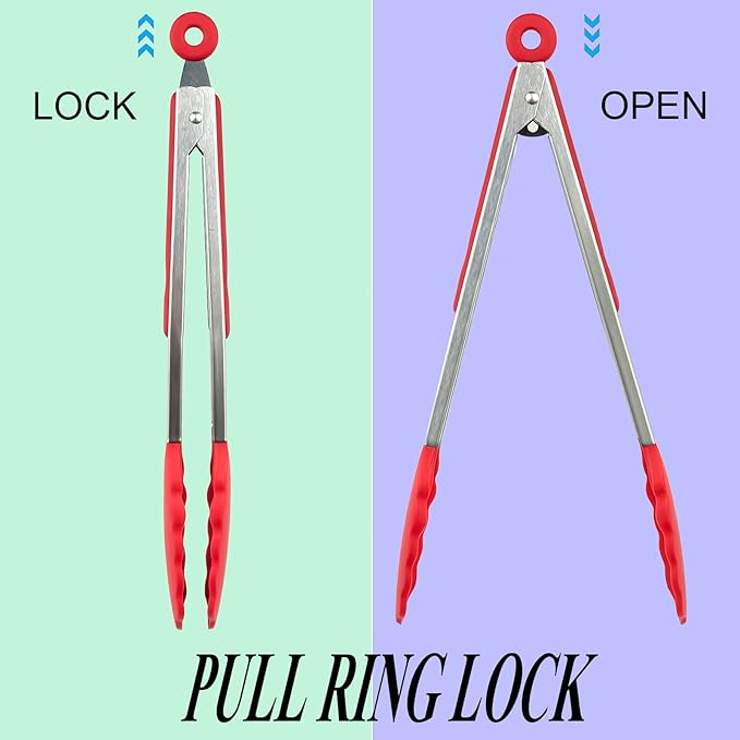 - EQUIPPED WITH A PULL-RING TECHNOLOGY: Our kitchen tongs are designed with a locking mechanism. The pull ring technology will keep your tongs from opening and closing. Simply pull the ring to lock and push to unlock.
