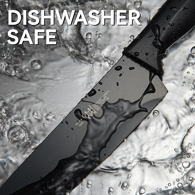 - NON-STICK & RUST RESISTANT - With a black coating that prevents oxidation of the steel, the kitchen knife set will last a long time and remain non-stick and rust resistant