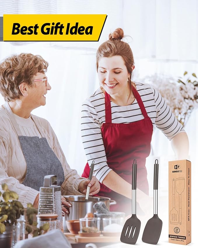 - Thoughtful Design : The good-quality 18/8 stainless steel keeps you away from the trouble of kitchen utensils rusting or breaking; This anti-scald silicone handle is not easy to conduct heat and is more comfortable to hold than traditional utensils