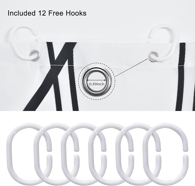 - EASY CARE -- Machine washable shower curtain with plastic C-hook allows easy installation and removal for cleaning. The rustproof grommets ensure you easily change the shower curtain rings as you like. Machine Washable in cold water. Do not bleach.