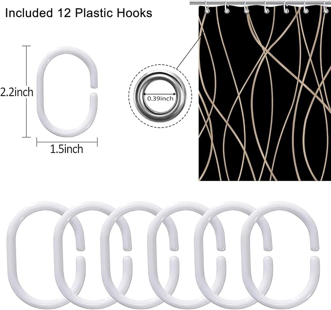 - EASY CARE -- Machine washable shower curtain with plastic C-hook allows easy installation and removal for cleaning. The rustproof grommets ensure you easily change the shower curtain rings as you like. Machine Washable in cold water. Do not bleach.