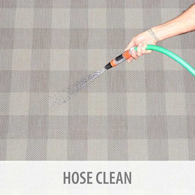 - [ WASHABLE: ] You can vacuum with a vacuum cleaner indoors and you can wash with a hose outdoors. To wash an outdoor rug, spray the surface with a 5-1 mixture of mild dish soap and water and then rise with a hose.