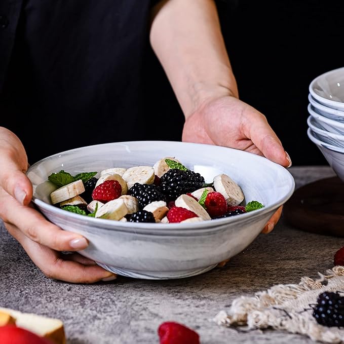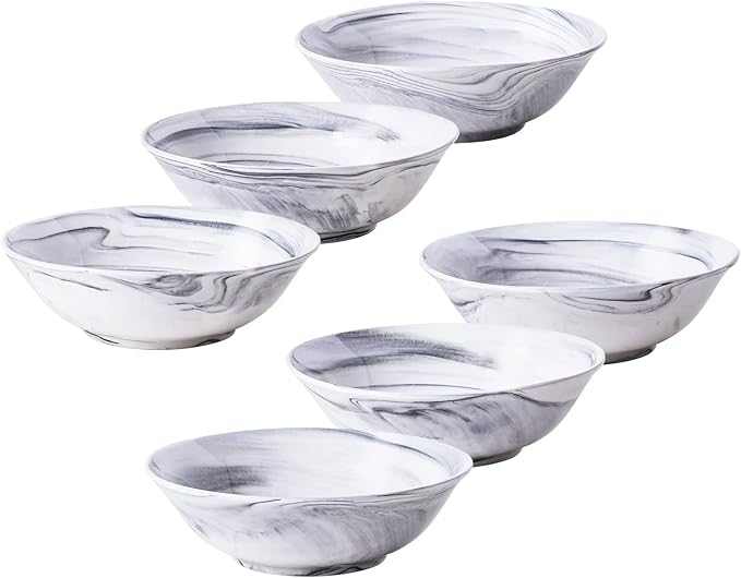 Yundu Grey Marble Ceramics Bowls Set of 6, 28 Ounce Pasta/Cereal/Salad/Soup Bowls for Kitchen, Dishwasher & Microwave Safe